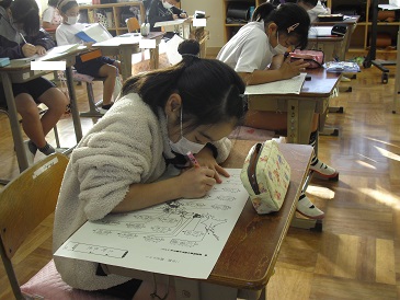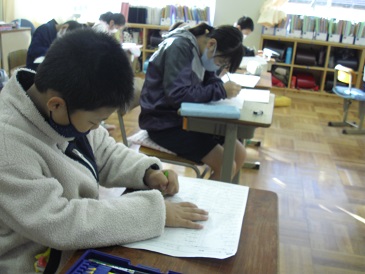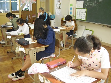 3・4年生の朝学習の様子です。来週の国語・社会のテストに向けて、予習をしていました。