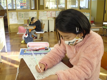 2年生の朝学習の様子です。既習事項の理解を深めるためのプリントを行っていました。