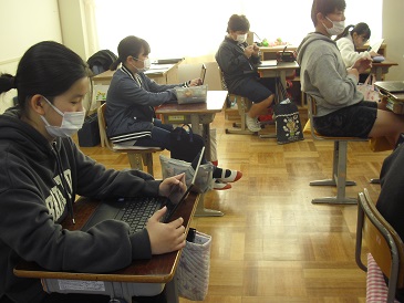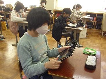 6年生は総合的な学習の時間において、防災学習を進めました。今日は、防災グッズには何を入れるのか等、Chromebook(クロームブック)を使って調べました。