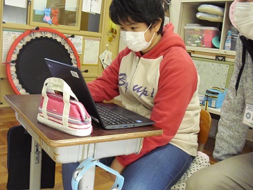 6年生は自立活動の時間において、「戸田のよさをスライドにまとめよう」という学習を行っていました。最初にChromebook(クロームブック)を使って、戸田の特色について調べました。