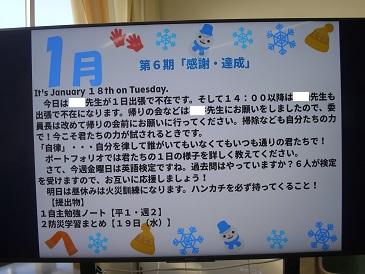 1/18(火)今朝の各クラスのお知らせ