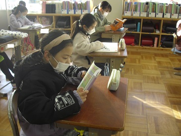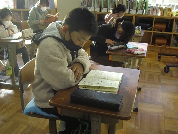 3・4年生朝読書の様子です。学校図書館などで借りた本を集中して読んでいました。
