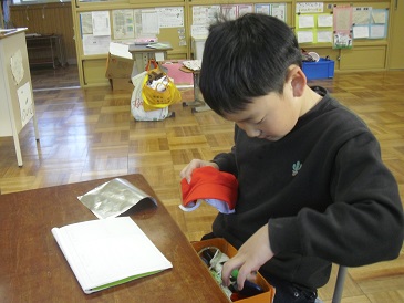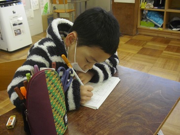 2年生朝活動の様子です。予定黒板を見ながら、明日の予定を書き写していました。