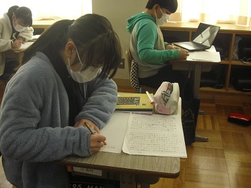 6年生は国語で「自分を見つめてみよう」という教材を学習しています。「仲間の作品をどのような視点をもって見合えばいいのか」という学習テーマのもと、まずはそれぞれが作文を書きました。