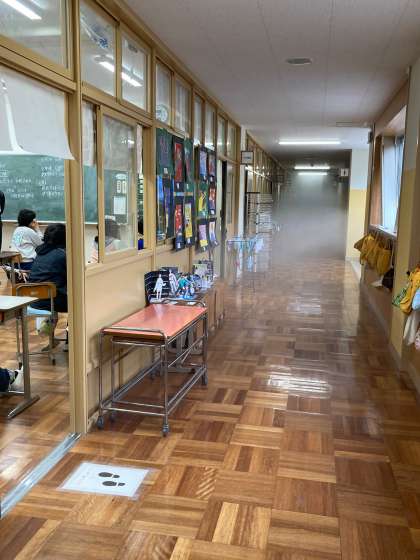 2階理科室から煙がでました。みんな落ち着いて行動していました。