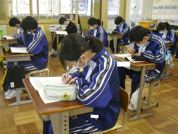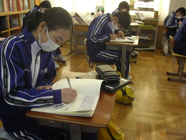 9年生は、朝活動の時間において天声人語の視写を行っていました。新聞のコラムから読み取り、内容も理解した上で視写しています。