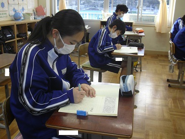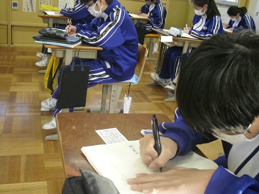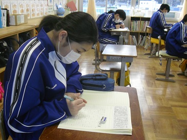 8年生は、朝活動の時間において天声人語の視写を行っていました。一字一字丁寧にワークノートへの書き込みをしていました。