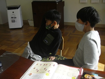 1年生は音楽で「日本の歌を楽しもう」という教材を学習しています。「おおなみ こなみ」というわらべうたを歌いました。また、歌に合わせてなわとび遊びを楽しみました。