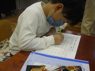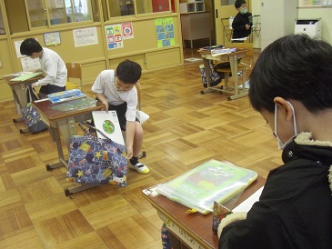 1年生朝読書の様子です。朝読書を終えると読書カードにページ数を記入し、朝の会の準備に取りかかります。