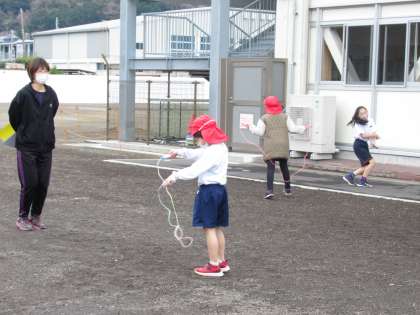 小学生が「なわとび運動」を行っていました。1年生から6年生までが積極的に参加しています。