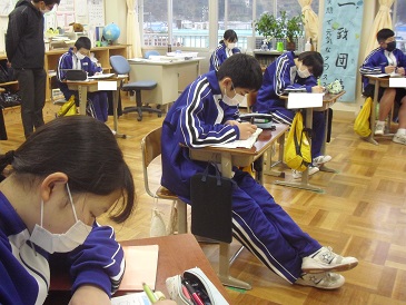 7年生朝学習の様子です。学年末テストに向けて、個々で学習を進めています。