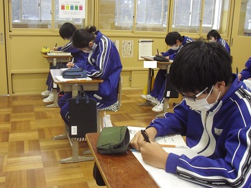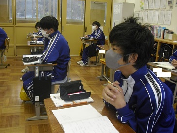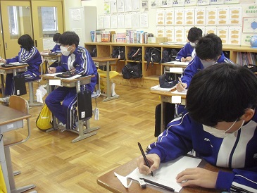 8年生は数学で「確率」について学習しています。樹形図を使って簡単に確率を解く方法を考えました。