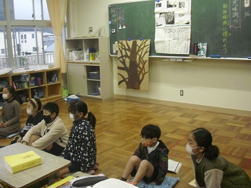 3年生は国語で「モチモチの木」という教材を学習しています。寸劇練習を参観した児童生徒支援員さんが、一人一人に励ましを送っていました。