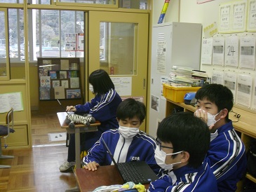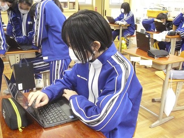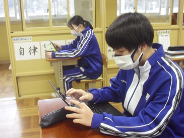 9年生朝活動の様子です。Chromebook(クロームブック)の情報を参考にしながら、3月に行う活動について話し合いました。