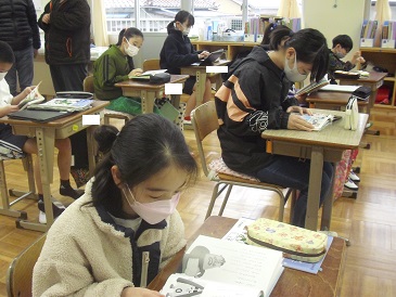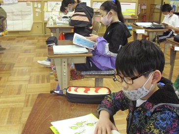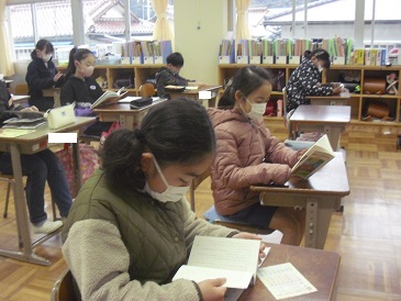 3・4年生朝読書の様子です。学校図書館などで借りた本を集中して読んでいました。