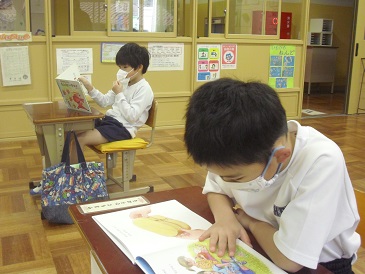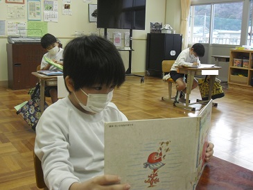 1年生朝読書の様子です。学校図書館などで借りた本を集中して読んでいました。