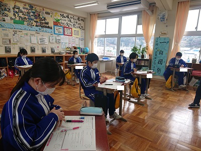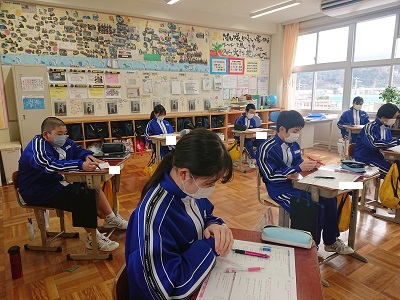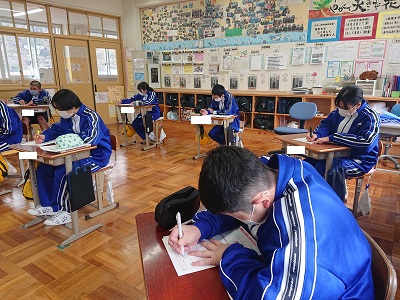 7年生は数学で「空間図形」について学習しています。既習事項の確認として、演習問題に取り組みました。