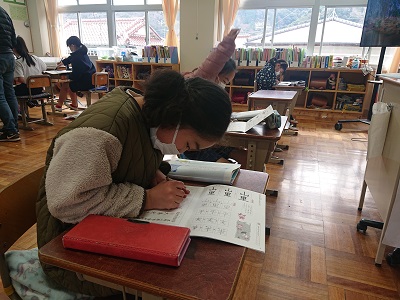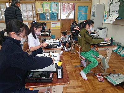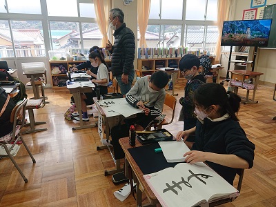 3・4年生は、書写の時間に3年生は硬筆で「手紙の書き方」、4年生は毛筆で「ます」という字を、お手本を見ながら丁寧に書写しました。