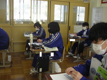 8年生は社会で日本の地理について学習しています。「東北・北海道の自然」について、教科書や資料集、地図などを使いながら考察しました。
