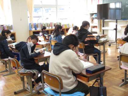 3・4年生朝読書の様子です。学校図書館で借りた本などを集中して読んでいました。