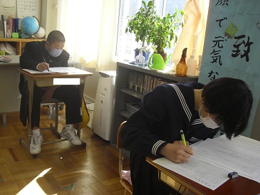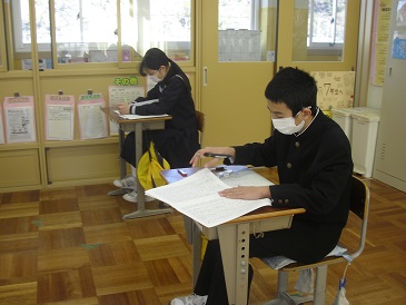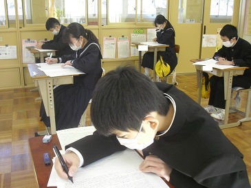7年生学年末テストの様子です。問題をじっくり読みながら解答していました。