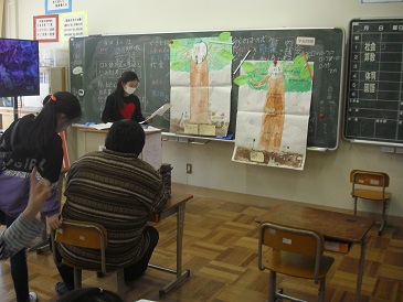 4年生は国語で「ドリームツリーを作ろう」という教材を学習しています。それぞれが作成したドリームツリーを使って、プレゼンテーションの準備や練習をしていました。