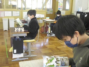 5年生は社会で単元テストを行いました。テストを早く終えた子は静かに読書をしていました。