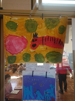 2年生校内美術展を2階2年教室前で行っています。みんなすてきな作品です。