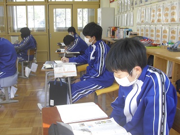 8年生は社会で「近代革命の時代」について学習しています。今では当たり前となっている国民主権や人権について、教科書や資料集、Chromebook(クロームブック)を使いながら確認をしました。