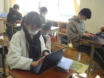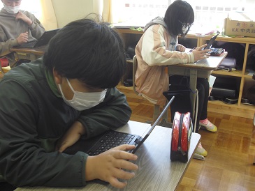 6年生は総合的な学習の時間において、昨日の修学旅行で学んできたことをChromebook(クロームブック)を使いながらリーフレット作成をしました。