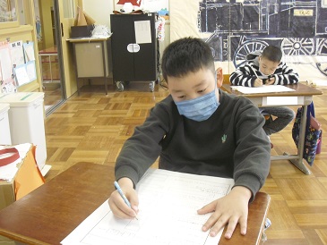 2年生は国語で「1年間のまとめ」を行っていました。既習事項の確認のためにまとめのテストを行っていました。