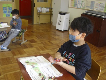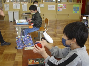 1年生は音楽で「みんなで あわせて たのしもう」という教材を学習しています。みんなで気持ちを合わせて「こいぬのマーチ」を演奏しました。