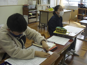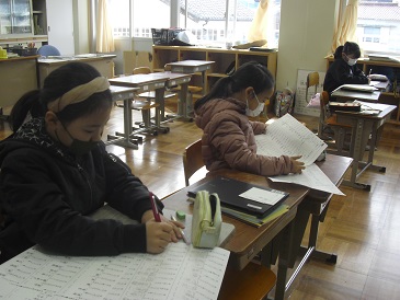 3年生は国語で「1年間のまとめ」を行っていました。既習事項の確認のためにまとめのテストを行っていました。
