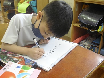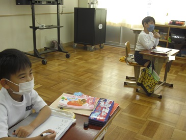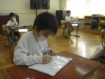 1年生は国語で「1年間のまとめ」を行っていました。1年生で習った漢字を確認しました。