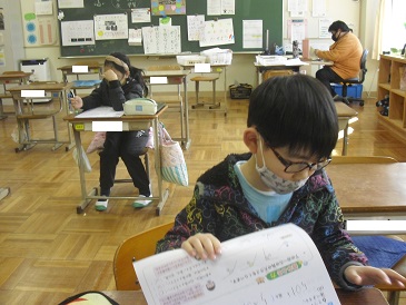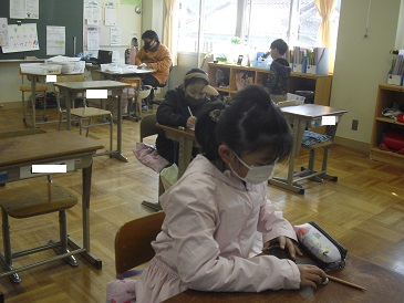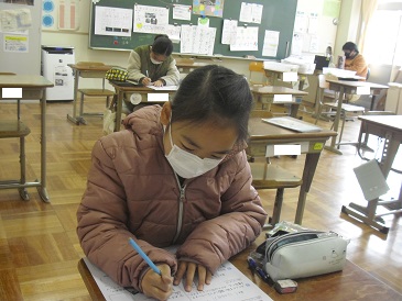 3年生は算数で「1年間のまとめ」を行っていました。既習事項の確認のためにまとめのテストを行っていました。