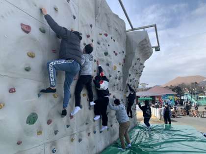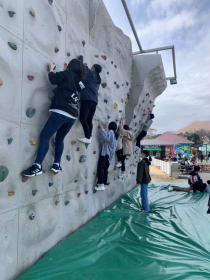 伊豆ぐらんぱる公園での9年生の様子です。ボルダリングにチャレンジしています。