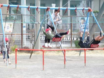 20分休みには外で元気に遊ぶ小学生の姿が。おにごっこ、なわとび、ブランコ、一輪車…。体を動かすのは気持ちがいいですね。