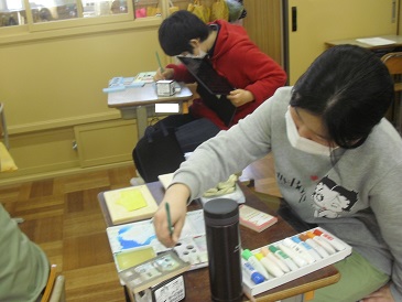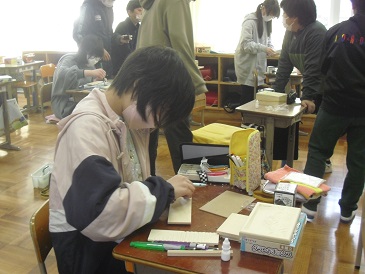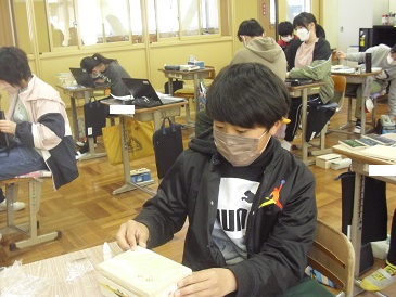 6年生は小学校卒業記念のオルゴールボックスを作成してます。周りに好きな絵をかいて彫り、色をつけています。いつまでも思い出に残る作品にしたいですね。