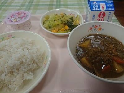 給食も残すところあと2回となりました。今日は9年生が大好きなカレーライスにお祝いデザートもついていました。今日も美味しくいただきました。ご馳走様でした。