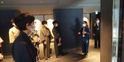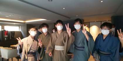 朝の会のためにロビーに集合しました。ホテルの方、看護師さんに挨拶し、伏見稲荷に向けて出発します。