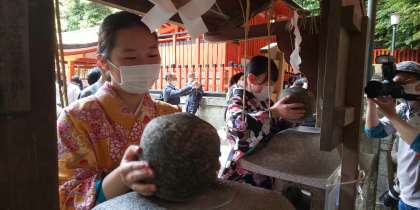 かなり並びましたが、重軽石に全員が挑戦しました。思ったより…。