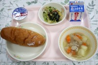 給食委員会の生徒が、給食ボードに明日の献立を記入していました。