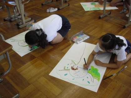 それぞれ「アイス屋さん」「漁師」「イラストレーター」など自分の夢があるので、それらを大きな木の真ん中に書き、色を塗りました。これからの学習が楽しみです。