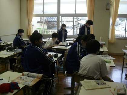 8年生は、「漫画で自己紹介」という教材です。絵や吹き出しを使って自分の特徴を表現しようと考えていました。4コマなので、ちょっと工夫が必要です。