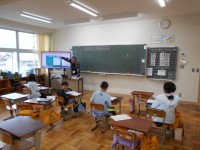 3・4年生は書写で、毛筆でした。3年生は「ビル」、4年生は「左右」を書きました。