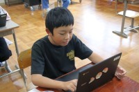6年生は理科です。伊豆ジオパークの動画から、山の斜面(崖の部分)に模様が見られ、それを地層と言うことを学びました。戸田湾にも同じような模様が見られますね。