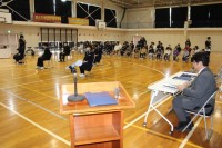 本日のロング昼休みに、火災避難訓練を行ないました。消防署職員の方々にも来校していただき、みんな真剣に取り組みました。スモークハウス体験では、視界が煙でふさがれ思うように前に進めないという体験ができました。また、水消火器体験では、消火器の使用方法を学ぶとともに、炎が天井まで達してしまうと消火器では消すことができないので、逃げることを最優先にするということを学びました。