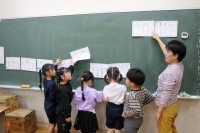 1年生の音楽では、校歌「戸田の風」を歌唱したあと、「○びょうしをつくろう」という...