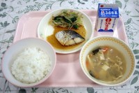 今日の給食は、「ご飯」「鰯の蒲焼き」「キャベツのゆかり和え」「薄くず汁」「牛乳」...