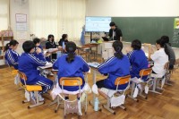 4年2組では、明日、沼津第四小で開かれる 「なかよし交流会」に向けて、あいさつの...